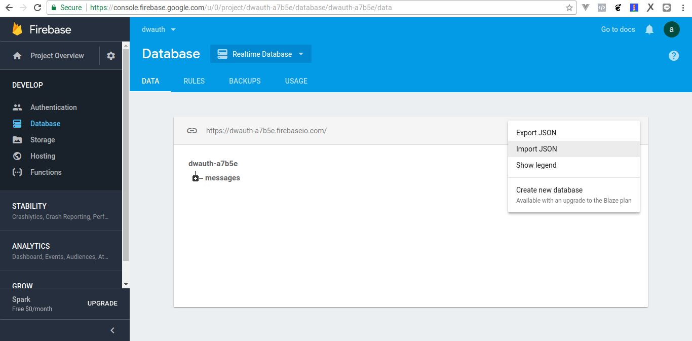 Setelah proses Import selesai, maka halaman database dalam console Firebase akan tampak seperti berikut ini: